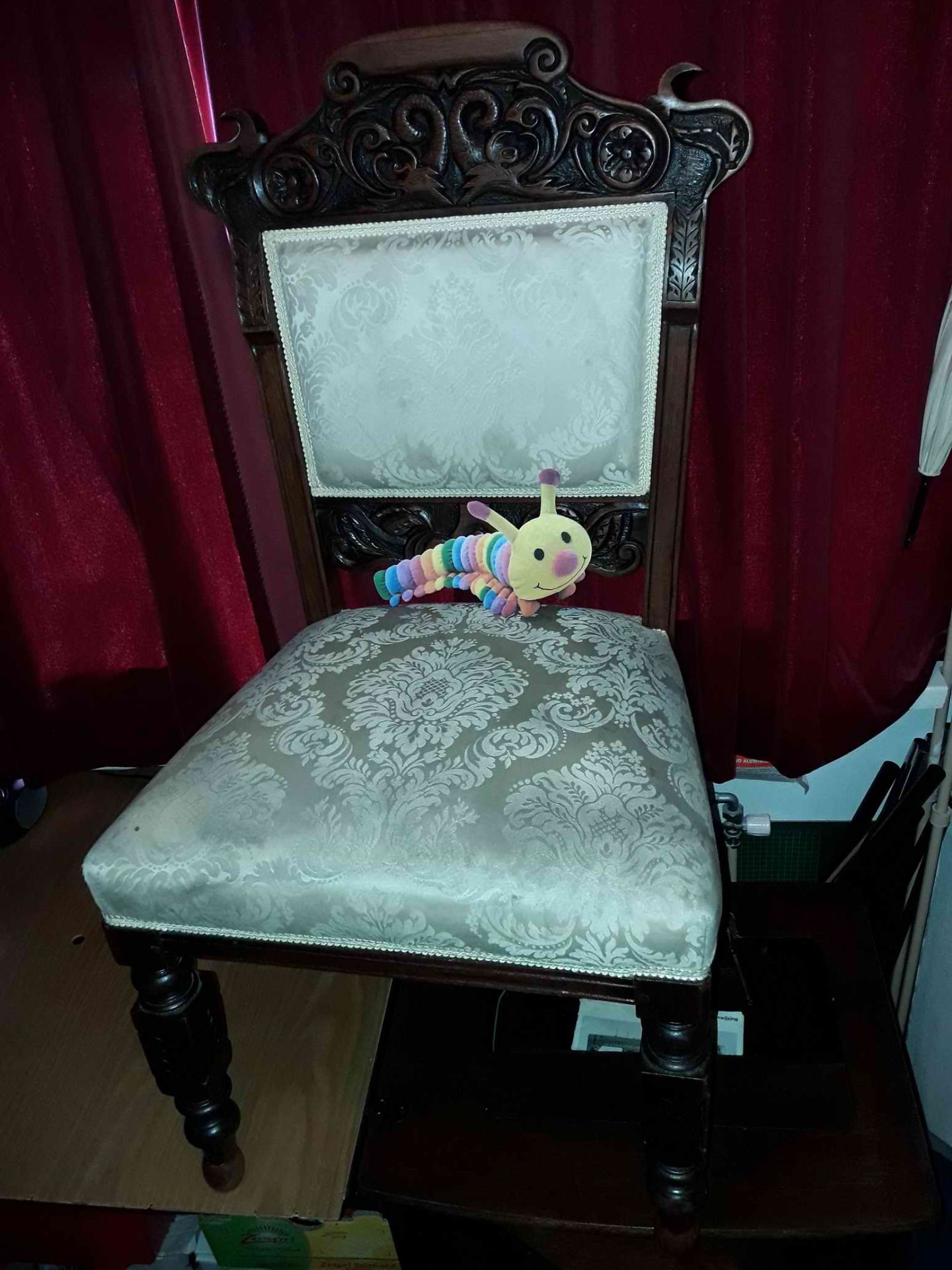 en deze antieke stoel is gestoffeerd met een nieuwe print